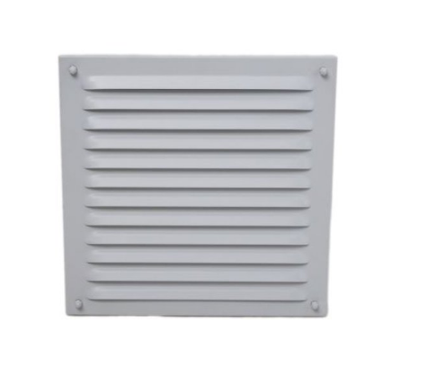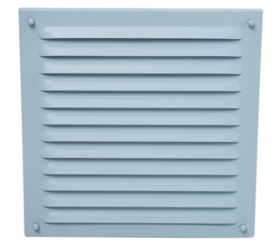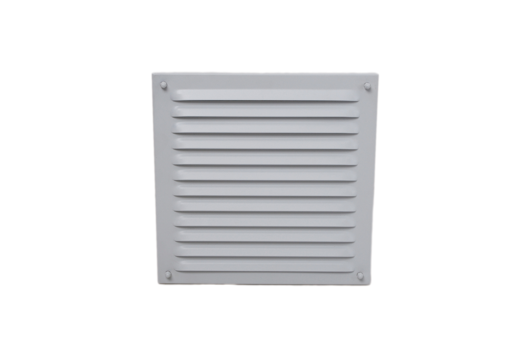 Außenlugtgitter für einfache und schnelle Montage in der Gebäudeaußenwand mit integriertem Anschlussstutzen für ein Flexrohr. Maße für Kernbohrung siehe Tabelle.