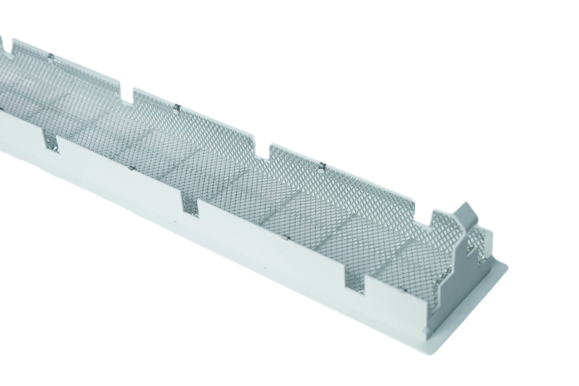 CB Gitter für aktive Hinterlüftung mit rechteckigem Auslass (Breite 6,5 cm). Mit dem in 3 Abmessungen lieferbaren Gitter kann die Stauwärme der Ofenanlage und den angrenzenden brennbaren und isolierten Rückwänden sinnvoll abgeführt werden. Zum Einbau in die Kachelofendecke zur Anbauwand, bestehend aus Einbaurahmen und herausnehmbarem Gitterelement mit rechteckigen Auslässen. Temperaturbeständige, pulverbeschichtete Oberfläche.