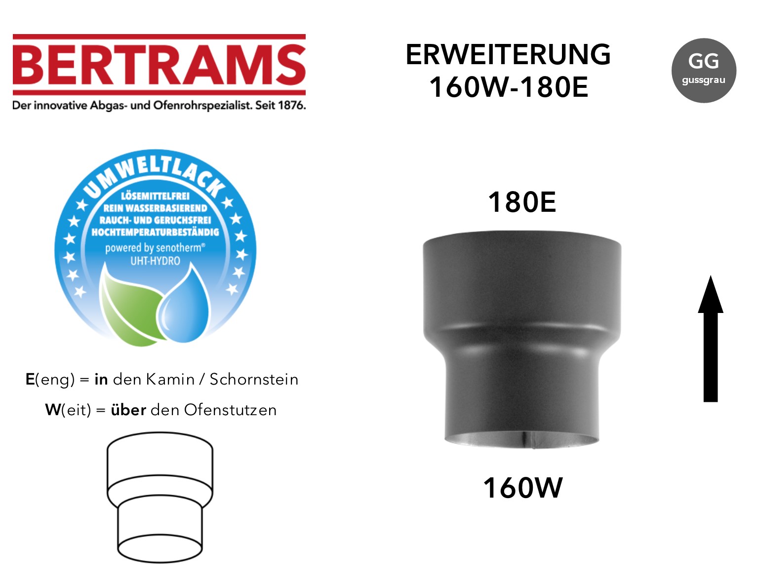 Erweiterung Bertrams gussgrau Ø Ofen 160 – Kamin 180 mm