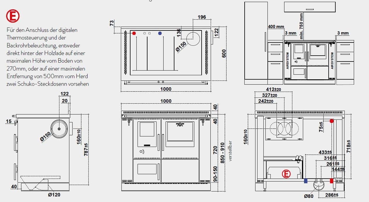 Gerätemaße (B x T x H): 1000 x 600 x 850 – 910 mm
