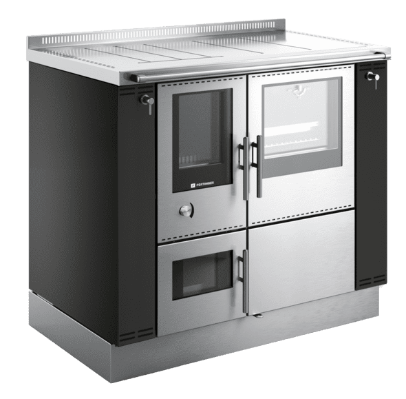 Alle drei erfüllen unterschiedliche Bedürfnisse, und alle drei haben eine großzügige Serienausstattung: selbstreinigendes Sichtfenster mit Dreifach-Verglasung, Backrohrbeleuchtung, Teleskopauszüge, elektronische Steuerung und einen separaten, geschlossenen Kreislauf aus Kupfer für die Einbindung einer thermischen Ablaufsicherung.