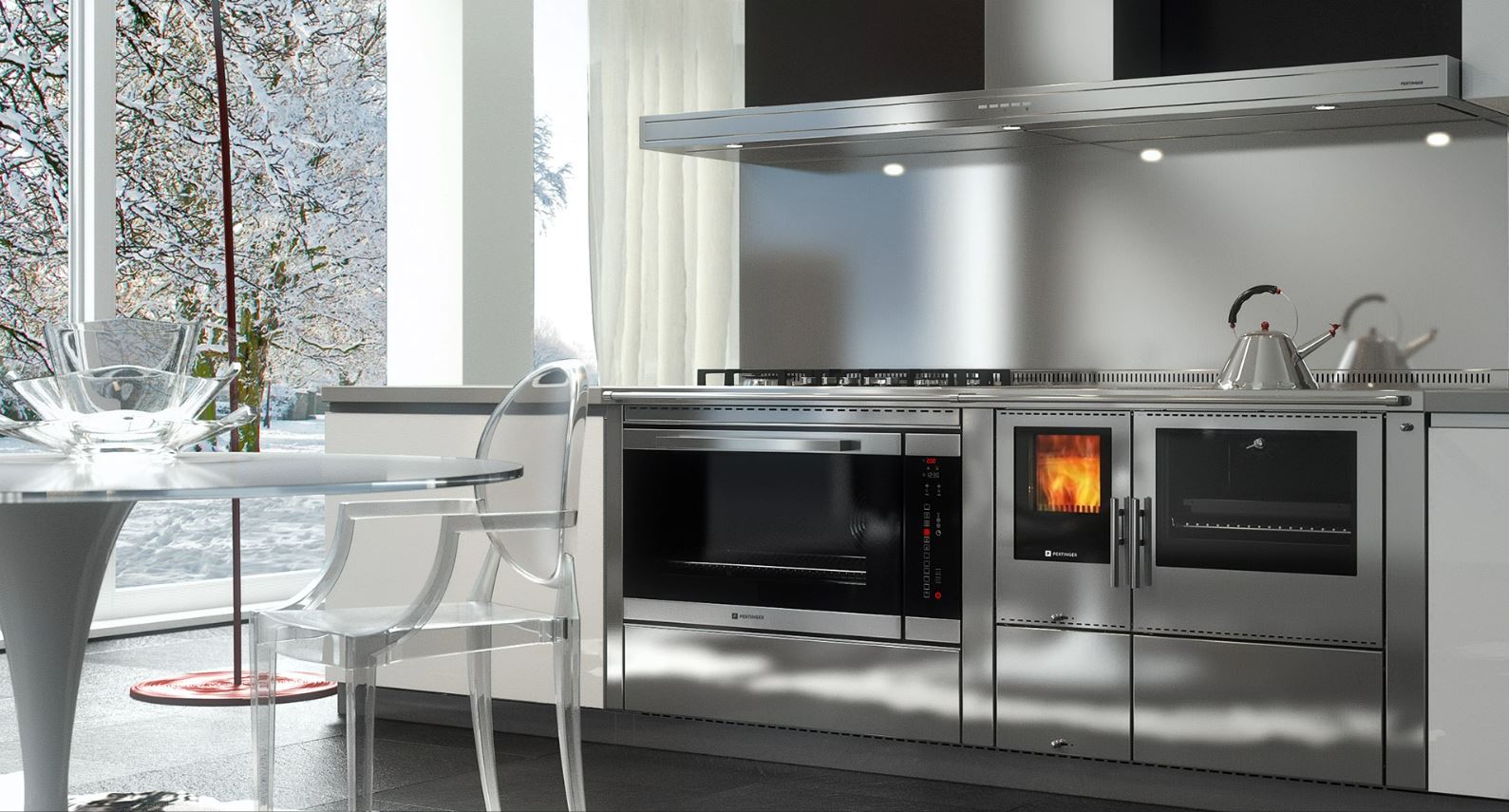 Alle drei erfüllen unterschiedliche Bedürfnisse, und alle drei haben eine großzügige Serienausstattung: selbstreinigendes Sichtfenster mit Dreifach-Verglasung, Backrohrbeleuchtung, Teleskopauszüge, elektronische Steuerung und einen separaten, geschlossenen Kreislauf aus Kupfer für die Einbindung einer thermischen Ablaufsicherung.