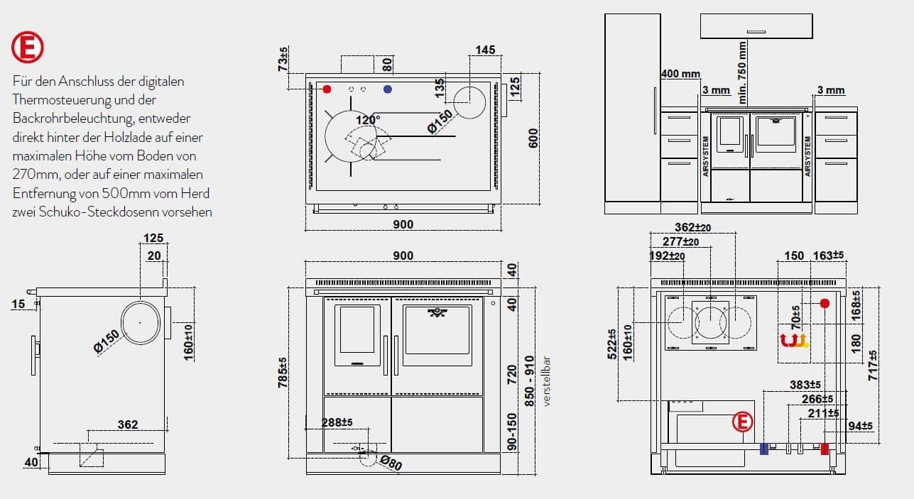 Gerätemaße (B x T x H): 900 x 600 x 850 – 910mm
