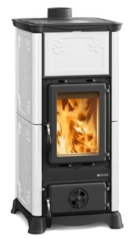 Kachelkaminofen La Nordica Emiliana strahlend weiß mit Kochplatte für Notfälle im Special Sale