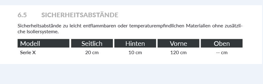 Halten Sie Rücksprache mit dem Schornsteinfeger Ihres Vertrauens – damit eine spätere Abnahme garantiert ist. Dieser kontrolliert vor dem Einbau der Feuerstelle Ihren Schornstein auf Verwendbarkeit. Beachten Sie grundsätzlich die Bedienungs- und Aufstellanleitungen des Ofens und wahren Sie die erforderlichen Sicherheitsabstände.