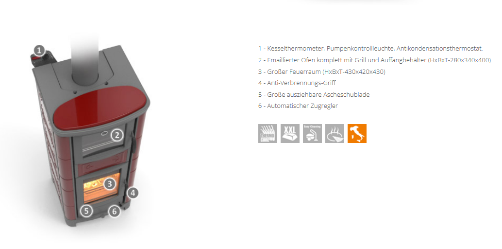 Entwickelt nach den neuesten Sicherheitsstandards und der Normen Europas, ein Produkt der Spitzentechnologie, enstanden auch mit den 40 Jahren Erfahrung in der Produktion von Heizkesseln und Heizungskuechenherd. Über die hydraulischen Anlage heizt Ardhea das ganze Haus, und moebliert mit ihren Details.