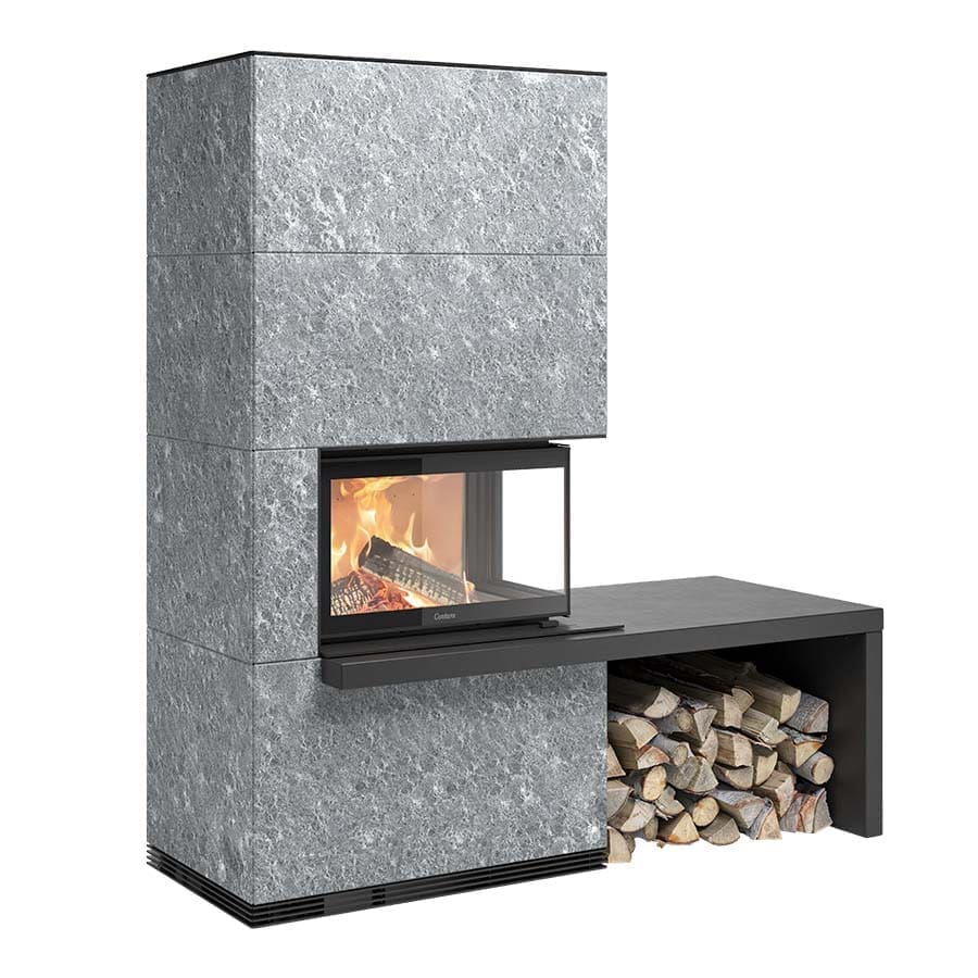 Alle Contura i40 Modelle sind links- oder rechtsseitig erhältlich, damit sie Ihrer Wohnsituation angepasst, aufgestellt werden können. Der für Contura entwickelte weiße Artstone besitzt eine glatt strukturierte Oberfläche und wirkt skandinavisch modern. Hier bietet sich ein schöner Kontrast bei der Wahl von schwarzem Granit, in Form von Sims oder Bank.