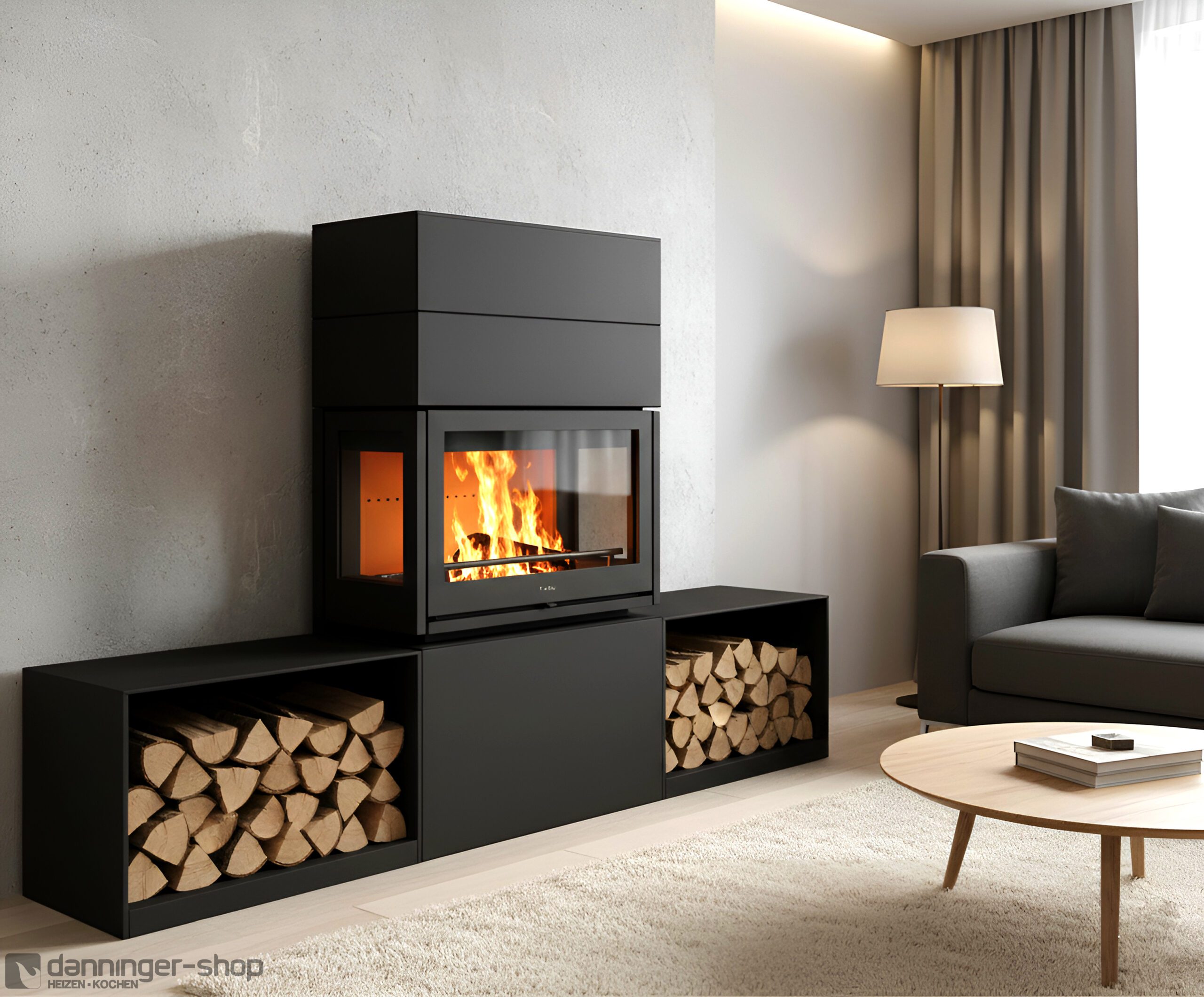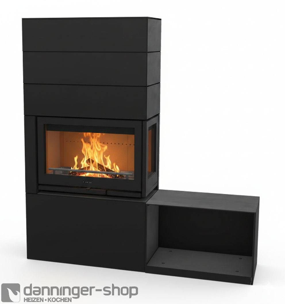 Kaminbausatz Contura MyCube G Stahl schwarz Fenstereck links Glasfront die neue Serie