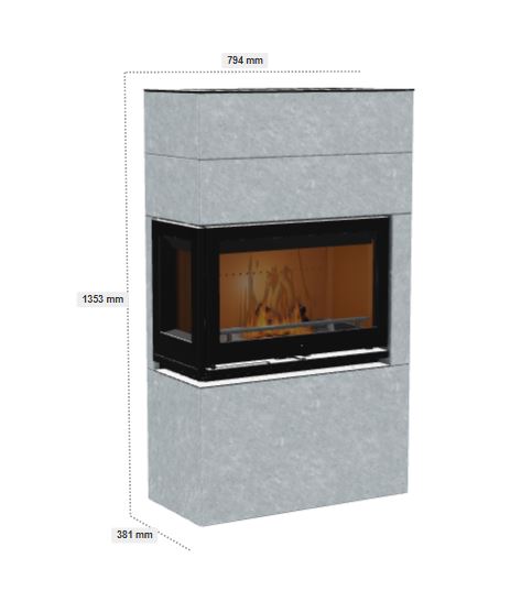 Kaminbausatz Contura MyCube T Speckstein Fenstereck links Gusseisenfront die neue Serie