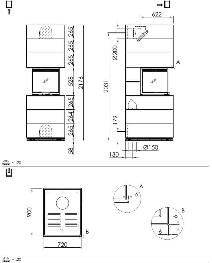Abgasanschluss: 200 oder 250 mm