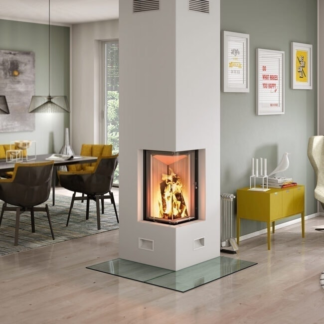 Wo auch immer Sie sich aufhalten: Sie erleben die Schönheit Ihres Kaminfeuers aus beiden Raumperspektiven. Die behagliche Wärme wird dabei nicht nur nach vorne, sondern auch zur Seite abgegeben.
