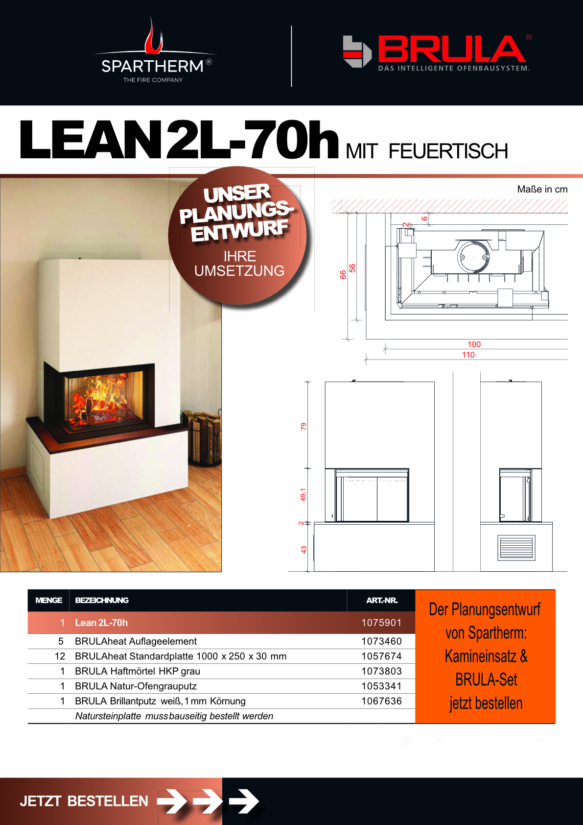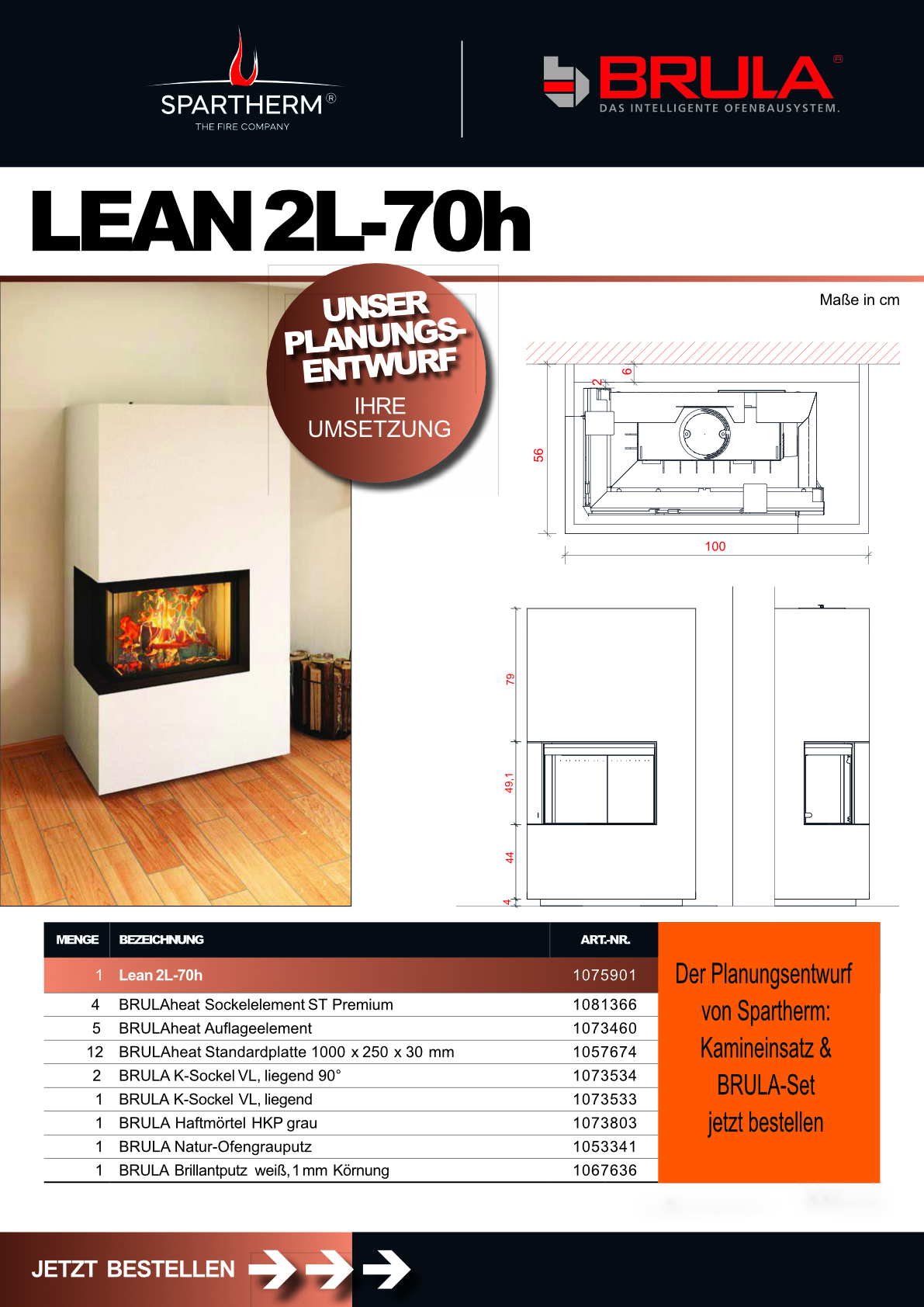 Der Kamineinsatz Lean 2L-70h überzeugt mit konsequent minimierter Gerätetiefe. Das kompakte Modell ist ideal, wenn der Platz begrenzt ist oder der Wärmebedarf geringer ausfällt. L-förmige Sichtscheiben schaffen ein beeindruckendes Feuerpanorama. Feuerungstechnisch punktet das innovative Lean-Modell mit Infrarot-beschichteter Brennraumverglasung für reduzierten Strahlungsabstand und verringerte Anhaftungen. Pluspunkt für die Umwelt: Das kompakte Format gewährleistet eine effiziente und damit nachhaltige Nutzung des Brennstoffs Holz.