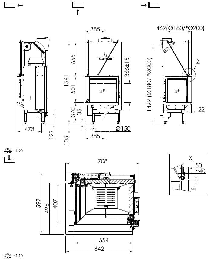 • Abgasanschluss: 180 oder 200 mm