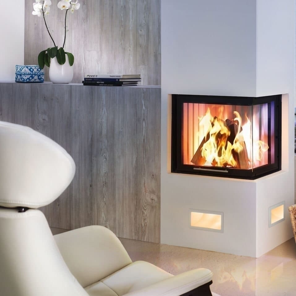Ideal für offene Wohnformen, für Räume, die ineinander übergehen: Von der Küche zum Essbereich, vom Esszimmer zum Wohnbereich. Wo auch immer Sie sich aufhalten: Sie erleben die Schönheit Ihres Kaminfeuers aus beiden Raumperspektiven. Die behagliche Wärme wird dabei nicht nur nach vorne, sondern aus zur Seite abgegeben.