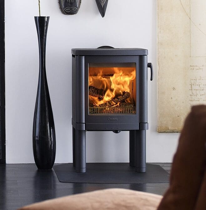 Contura 51 ist ein moderner Gusseisenkaminofen mit Konvektionsluft. Mit vier einstellbaren Füßen steht der Kaminofen fest auf allen Böden.