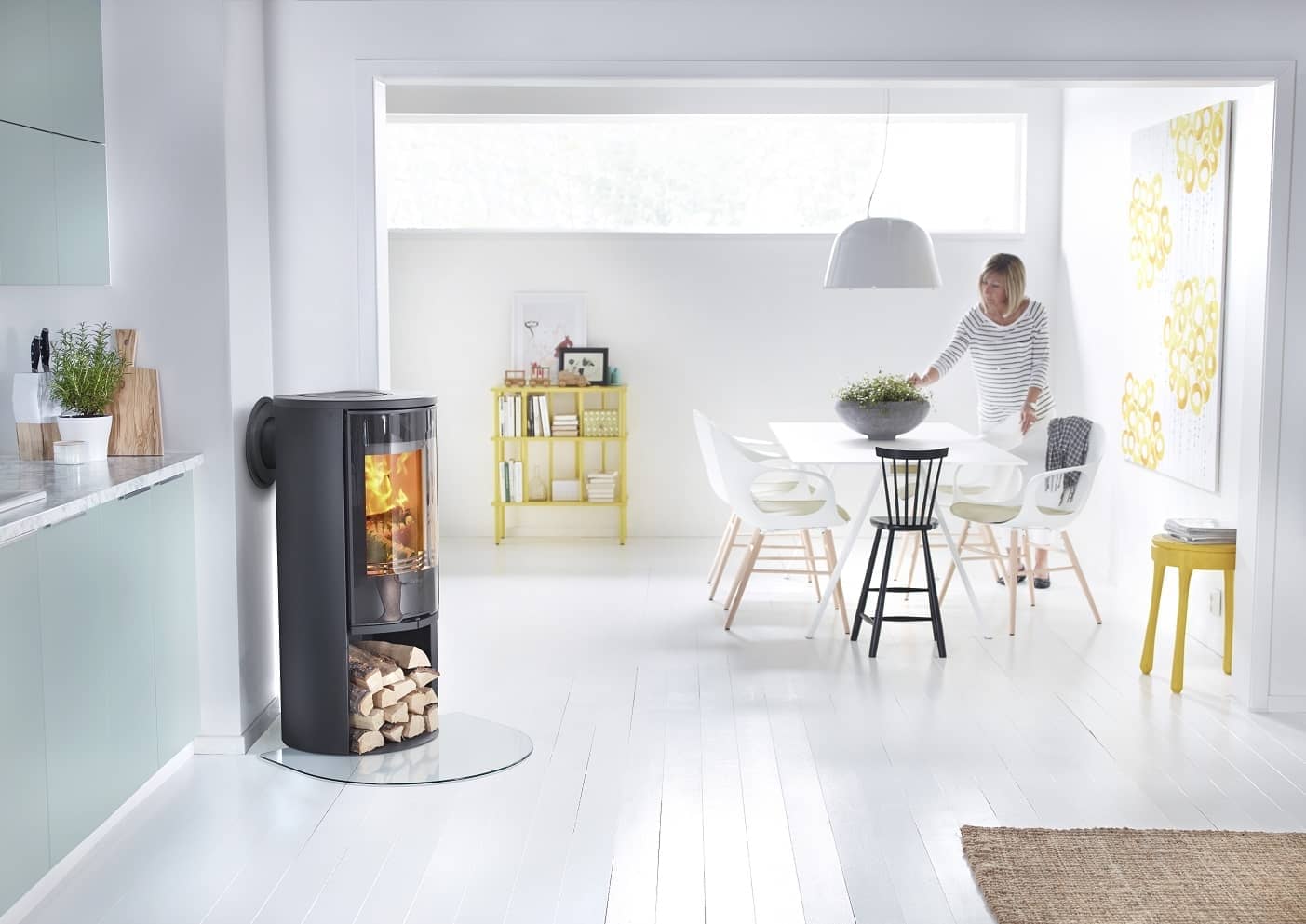 Mit der Glastür wurde Contura 510G Style einem modernen Facelifting unterzogen. Das Feuer wärmt nicht nur, sondern bringt dank der großzügig gestalteten Tür den gesamten Raum zum Leuchten.