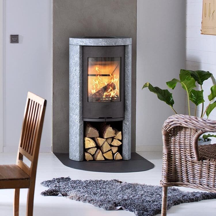 Die Verkleidung aus Speckstein verleiht Contura 520T Style natürlich wärmespeichernde Eigenschaften. Gleichzeitig sorgt das kompakte Format für eine einfache Aufstellung im Raum. Der Speckstein mit seinen natürlich variierenden Nuancen und Maserungen macht den Kaminofen zu einem Unikat.