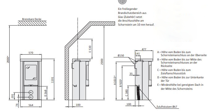 Halten Sie Rücksprache mit dem Schornsteinfeger Ihres Vertrauens – damit eine spätere Abnahme garantiert ist. Dieser kontrolliert vor dem Einbau der Feuerstelle Ihren Schornstein auf Verwendbarkeit. Beachten Sie grundsätzlich die Bedienungs- und Aufstellanleitungen des Ofens und wahren Sie die erforderlichen Sicherheitsabstände.