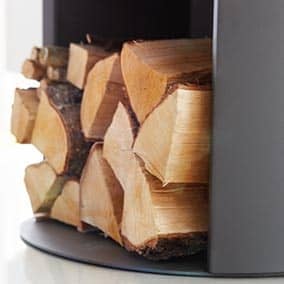 Ein praktisches Fach unter dem Kaminofen sorgt für Ordnung beim Brennholz und ist bei vielen Modellen standardmäßig vorhanden.