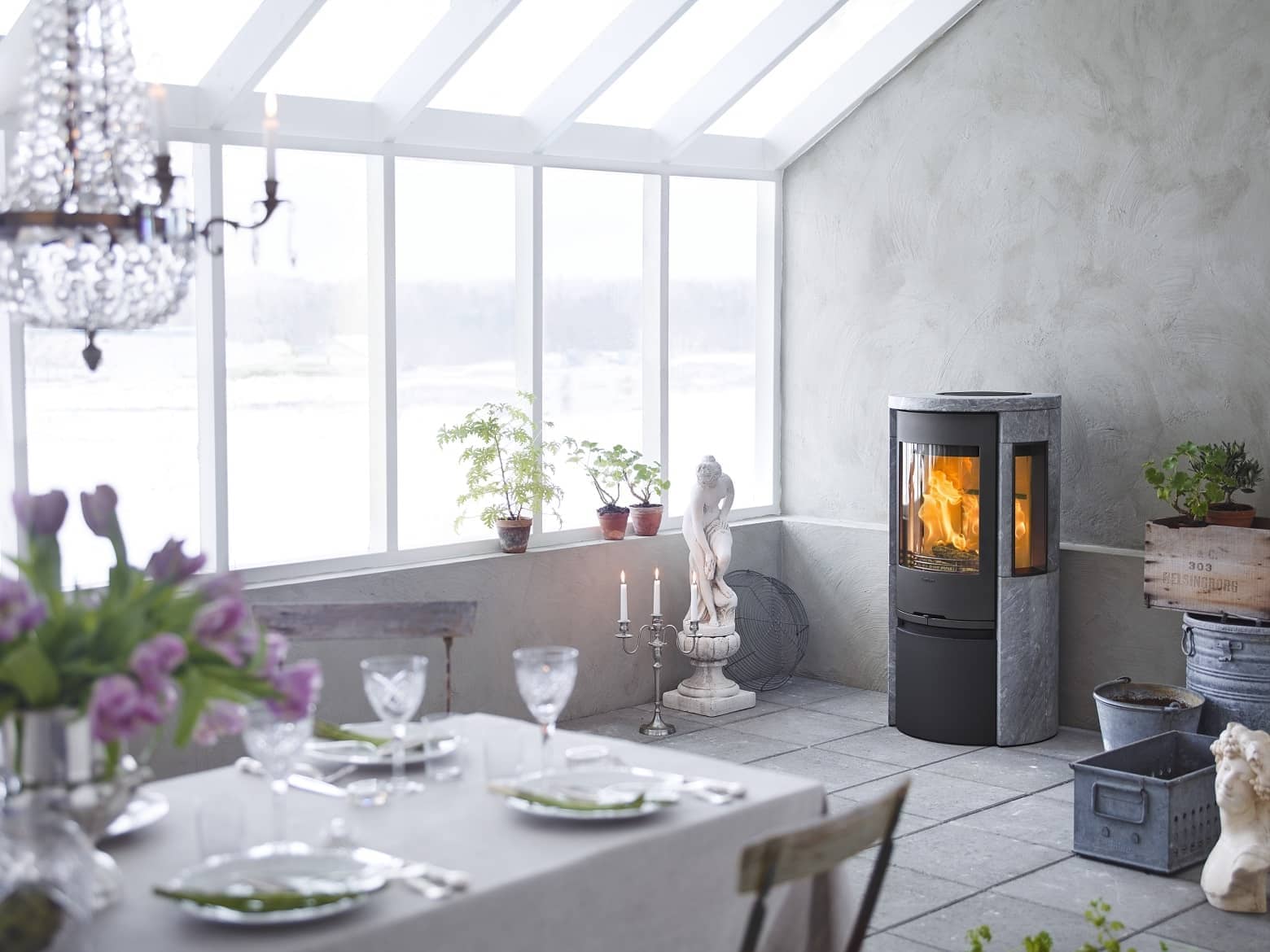 Contura 556T Style zeichnet sich durch neue, noch größere Seitenscheiben aus. Mit einer Verkleidung aus Speckstein erhalten Sie das Beste aus zwei Welten: Der Feuerschein verbreitet durch großzügige Glasflächen sein Licht. Der natürlich wärmespeichernde Speckstein sorgt für eine optimale Heizleistung.