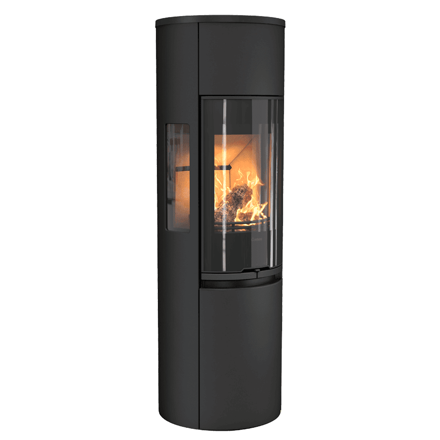 Contura 596 Style aus schwarzlackiertem Stahl zeichnet sich durch neue, größere Seitenscheiben aus, die das Feuer erst richtig zum Strahlen bringen. Entscheiden Sie sich für eine Abdeckung aus Speckstein, Glas (nur bei schwarzer Ausführung) oder Speckstein.