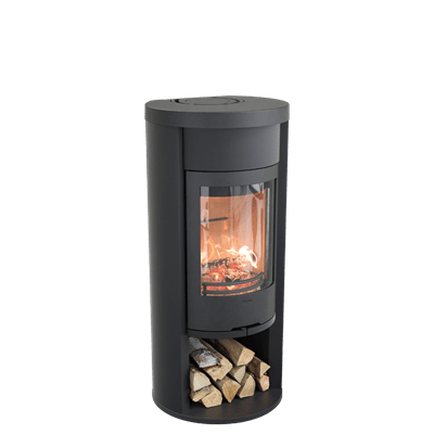 Ein praktisches Fach unter dem Kaminofen sorgt für Ordnung beim Brennholz und ist bei vielen Modellen standardmäßig vorhanden.