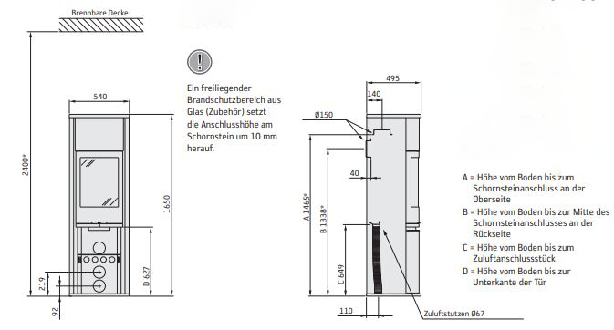 Halten Sie Rücksprache mit dem Schornsteinfeger Ihres Vertrauens – damit eine spätere Abnahme garantiert ist. Dieser kontrolliert vor dem Einbau der Feuerstelle Ihren Schornstein auf Verwendbarkeit. Beachten Sie grundsätzlich die Bedienungs- und Aufstellanleitungen des Ofens und wahren Sie die erforderlichen Sicherheitsabstände.