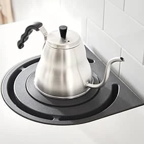 •  Abdeckung aus Gusseisen, Glas oder Speckstein