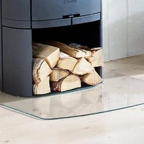 Ein praktisches Fach unter dem Kaminofen sorgt für Ordnung beim Brennholz und ist bei vielen Modellen standardmäßig vorhanden.