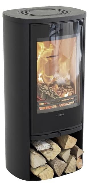 Ein praktisches Fach unter dem Kaminofen sorgt für Ordnung beim Brennholz und ist bei vielen Modellen standardmäßig vorhanden.