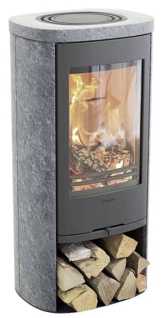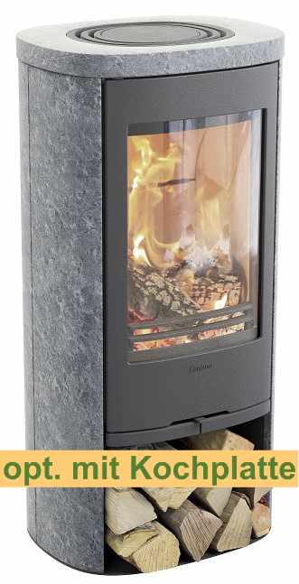 Contura 800 ist mit und ohne Seitenverglasung, Teil- oder Komplettverkleidung aus natürlich wärmespeicherndem Speckstein