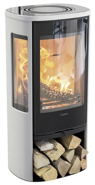 Contura 800 ist mit und ohne Seitenverglasung, Teil- oder Komplettverkleidung aus natürlich wärmespeicherndem Speckstein