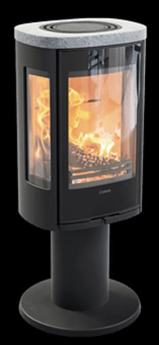 Kaminofen Contura 886G Style auf Säulenpodest Korpus schwarz Abdeckung Speckstein Glasfront