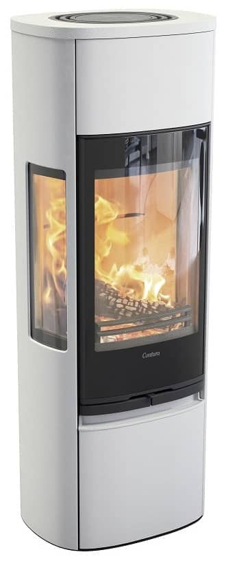 Contura 800 ist mit und ohne Seitenverglasung, Teil- oder Komplettverkleidung aus natürlich wärmespeicherndem Speckstein