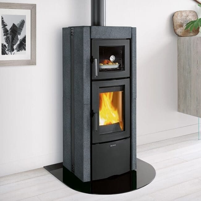 Holzofen mit Backfach aus Naturstein mit emailliertem Backblech ausgestattet.