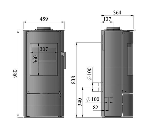• Sichtscheibe Maße ( H x B ): 360 x 307 mm