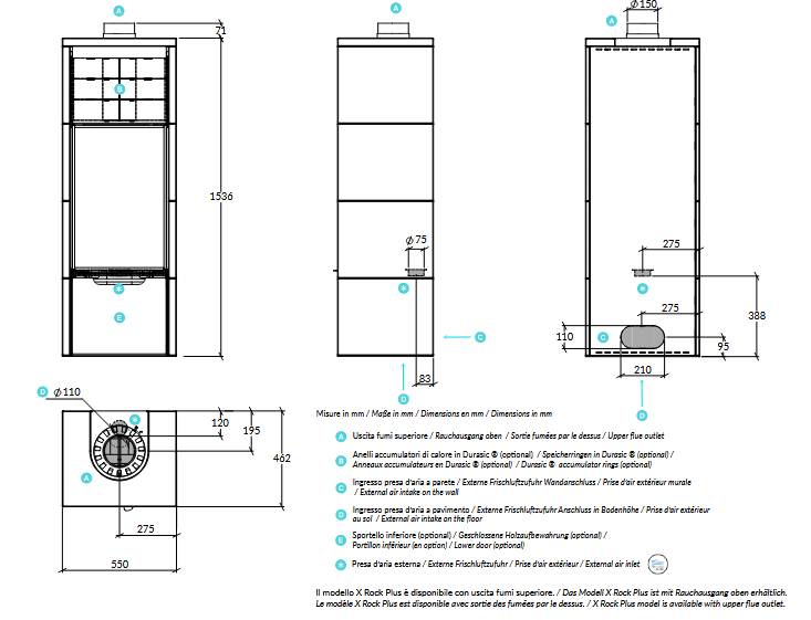 Kaminofen Rizzoli Serie X Rock Plus Naturstein