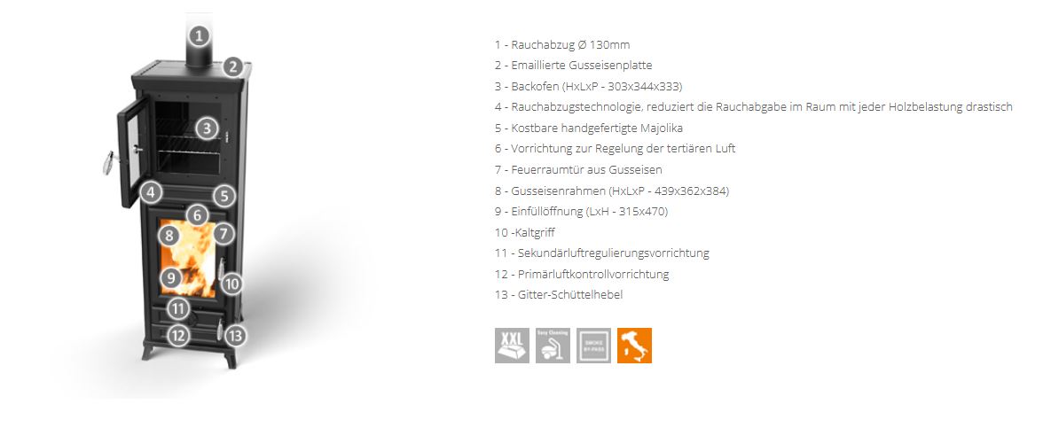 Für anspruchsvolle Personen, die Alles von einem Herd erwarten, ist Anna der umfassendste Ofen, den man sich wünschen kann mit einem Panoramablick auf das Feuer, der jedem Ofen in seiner Kategorie überlegen ist. Der große emaillierte Ofen und das Gerät SMOKE BY PASS-System machen diesen Ofen zu einem wertvollen und einzigartigen Objekt.