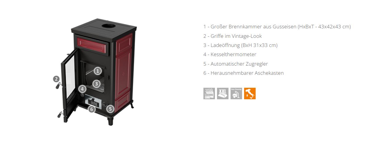 Umweltfreundlicher Holzheizofen mit hohem Effizienzgrad, der vielseitig und kostengünstig im Betrieb ist, weil er das Wasser für die hauseigene Anlage erhitzt. Verbunden mit einem Warmwasserspeicher, produziert er Brauchwarmwasser, das auch früh am Morgen bei erloschenem Feuer verfügbar ist. Mit der großflächigen Panoramascheibe und der geräumigen Brennkammer braucht man nicht auf den Zauber des Feuers zu verzichten; Wärmetauscher mit Technologie THERMOCORE. Sein Anschluss geht einfach und schnell vonstatten dank der Version “READY TO START”, die dank der folgenden Ausstattung installationsbereit ist: Umwälzpumpe, Sicherheitsventil, thermisches Auslassventil, Entlüftungsventil, Sicherheitswärmetauscher und Ausdehnungsgefäß für den Einbau bei geschlossenem Gefäß.