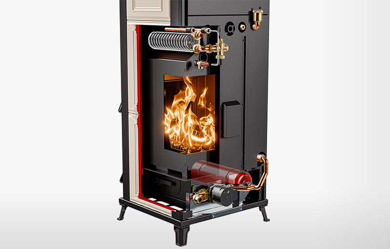 Umweltfreundlicher Holzheizofen mit hohem Effizienzgrad, der vielseitig und kostengünstig im Betrieb ist, weil er das Wasser für die hauseigene Anlage erhitzt. Verbunden mit einem Warmwasserspeicher, produziert er Brauchwarmwasser, das auch früh am Morgen bei erloschenem Feuer verfügbar ist. Mit der großflächigen Panoramascheibe und der geräumigen Brennkammer braucht man nicht auf den Zauber des Feuers zu verzichten; Wärmetauscher mit Technologie THERMOCORE. Sein Anschluss geht einfach und schnell vonstatten dank der Version “READY TO START”, die dank der folgenden Ausstattung installationsbereit ist: Umwälzpumpe, Sicherheitsventil, thermisches Auslassventil, Entlüftungsventil, Sicherheitswärmetauscher und Ausdehnungsgefäß für den Einbau bei geschlossenem Gefäß.
