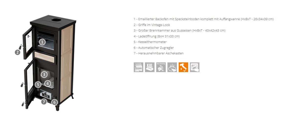 Emaillierter Backofen mit Specksteinboden komplett mit Auffangwanne (HxBxT – 26x34x39 cm)