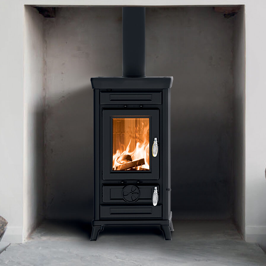 Die rationelle Form und das schlichte, sich auf die wichtigen Einzelheiten beschränkende Design machen diesen Ofen aufgrund seiner Sparsamkeit und Eleganz zu einem einzigartigen Produkt. Bei jedem Holznachlegen reduziert das innovative SMOKE BY PASS-System die Freisetzung von Rauchgasen in den Aufstellraum des Ofens drastisch.