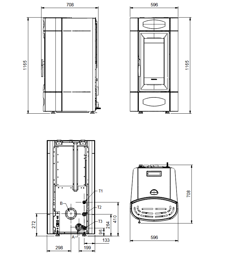 • Gerätemaße (H x B x T): 1165 x 596 x 708 mm