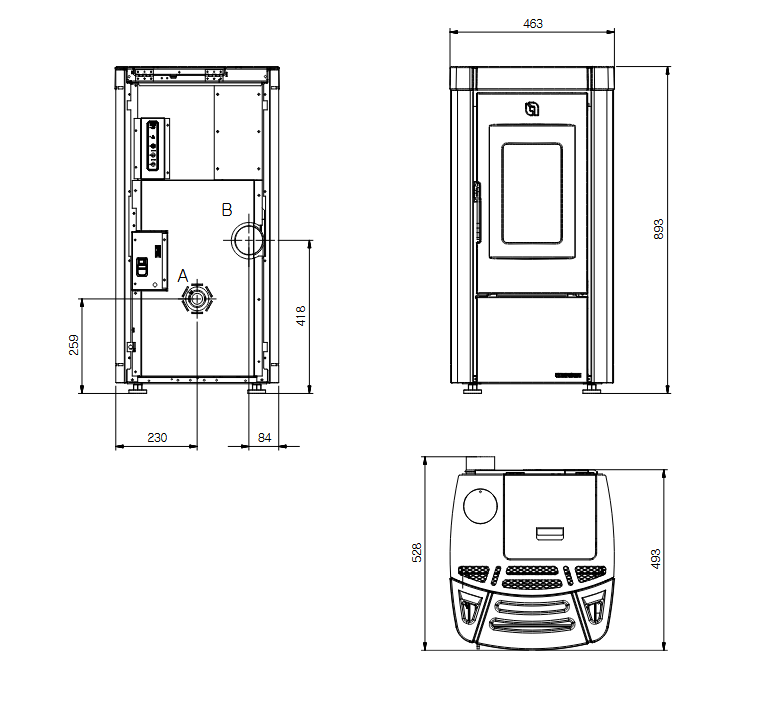 Gerätemaße (H x B x T): 893 x 463 x 528 mm