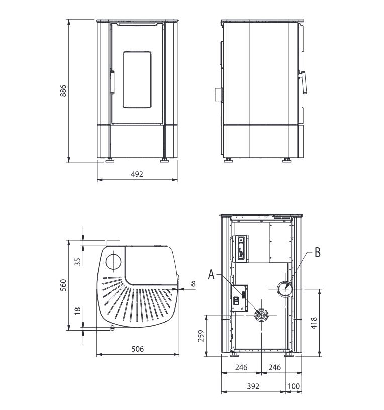 Gerätemaße (H x B x T): 886 x 506 x 560 mm