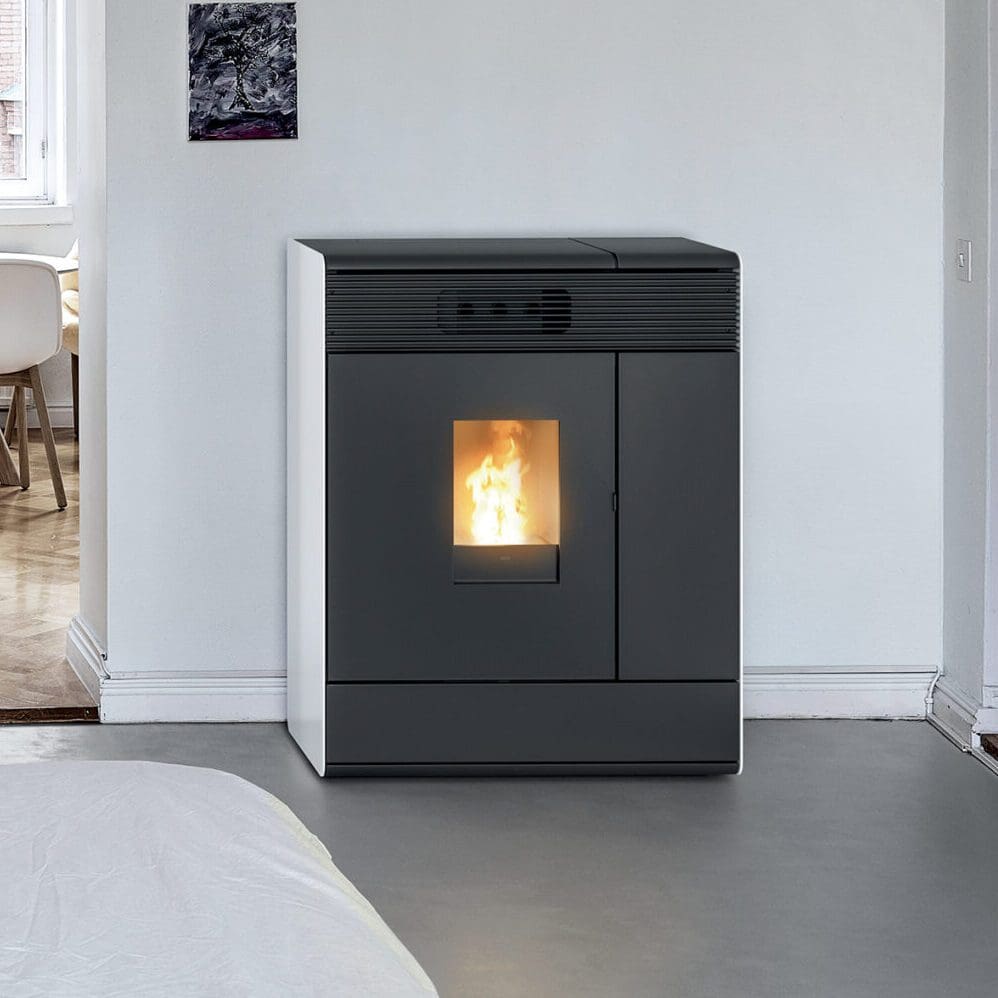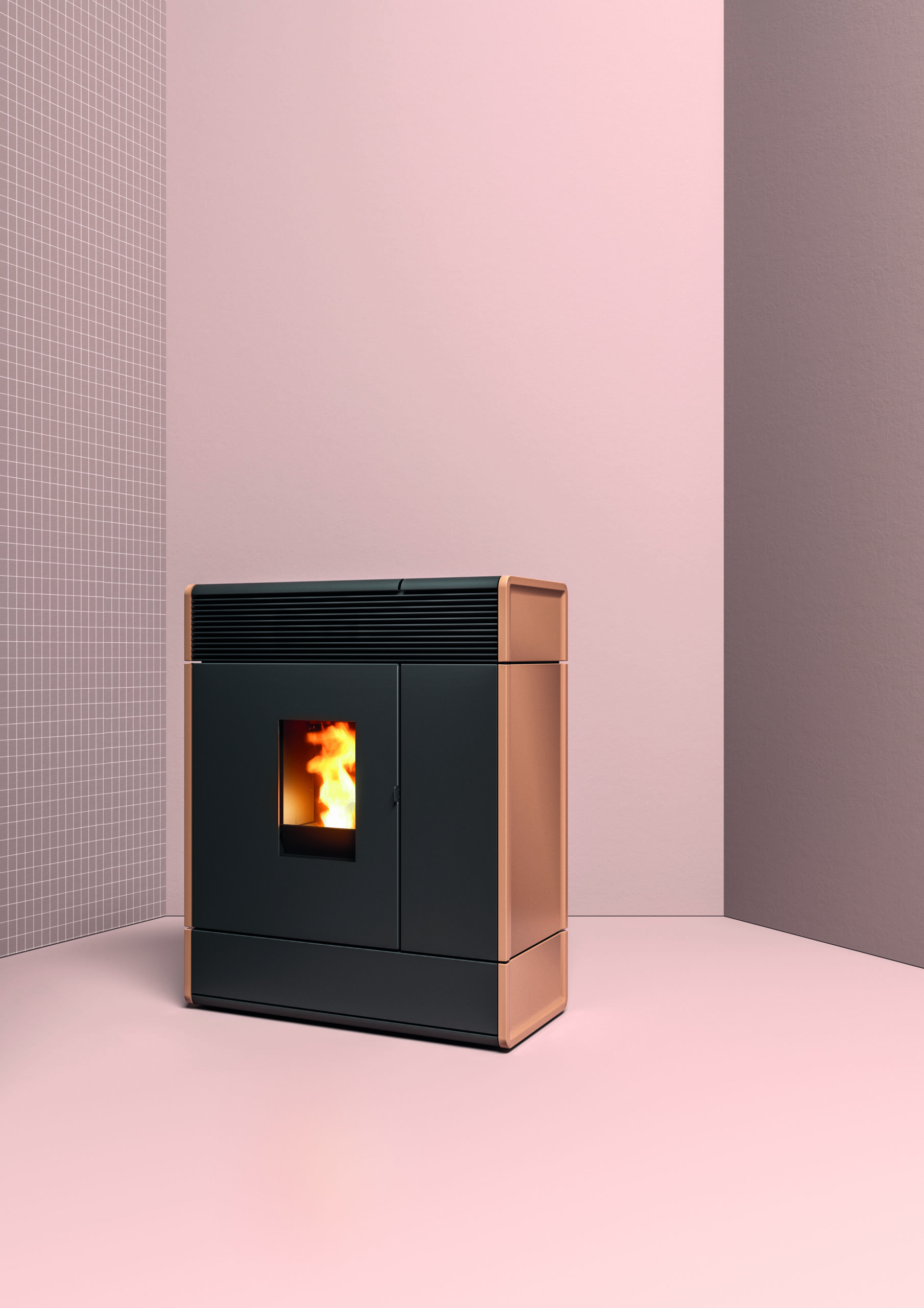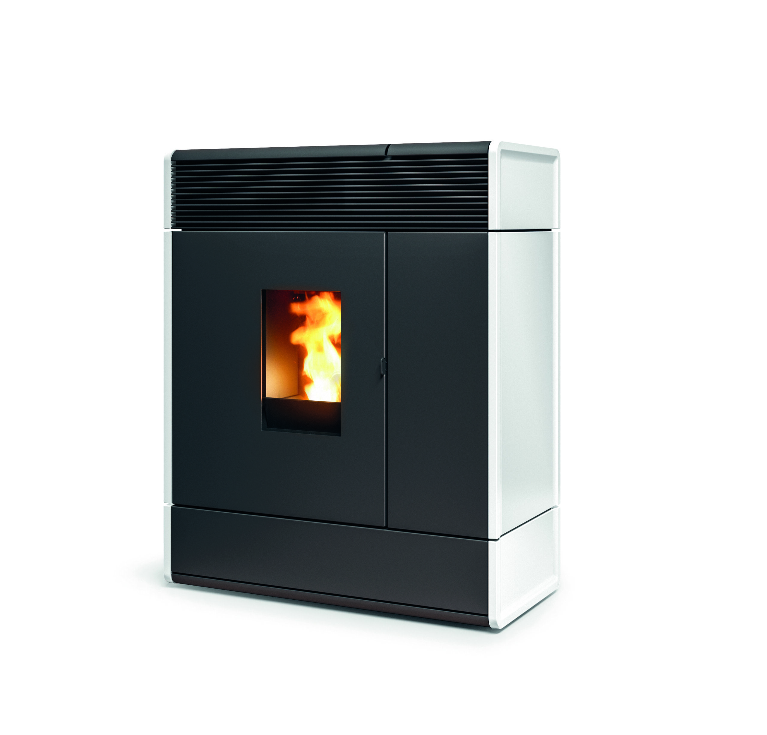 Hydro-Pelletofen mit Seiten aus Keramik in den Farben Sand, Bordeaux oder White oder aus Metall in Schwarz, Weiß oder Silver. Produkt mit einer selbstreinigenden Brennschale aus Gusseisen mit wöchentlicher Aschenentleerung und automatischer Aschensammlung (aus dem Hauptfach und dem Rauchgasumlauf). Hermetisches Produkt mit Keramikzündkerze, die um 40 % reduzierte Einschaltzeiten gewährleistet. Rauchgasabzug hinten oder oben. Bedienung über eine an der Topplatte befestigte, einfache und intuitive Bedientafel. Dieses Produkt bietet mehrere Verwendungsmöglichkeiten. Man hat die Wahl, ob man zur Steuerung des Ofens zu Hause oder von unterwegs das Smartphone verwenden möchte oder die Bedienung zu Hause per „freestanding“ Fernbedienung mit Raumthermostat (optional) oder Bedientafel (optional) vorzieht.
