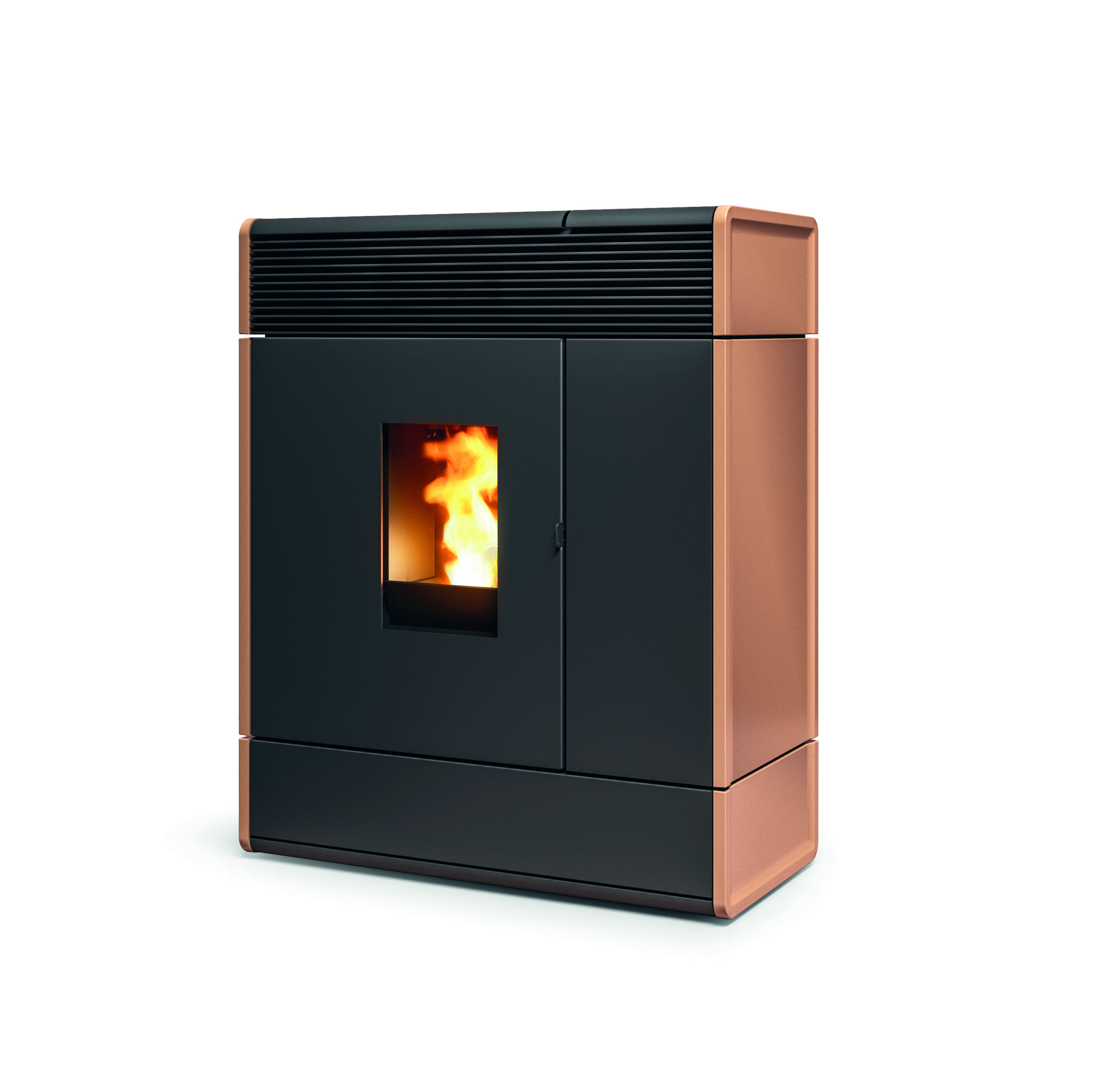 Dank seiner geringen Tiefe (40,7 cm) passt er ideal auch in kleine Räumlichkeiten. Der Rauchgasabzug befindet sich, wie auf dem Foto, an der Rückseite oder an der Oberseite, was eine besonders platzsparende Lösung darstellt.