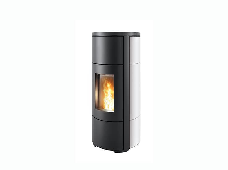 Kaminofen mit Verkleidung aus Stahl und Keramik mit glatter (Plain White, Plain Black) oder geriffelter (Line White, Line Bordeaux) Oberfläche. Kanalisierbares Gerät (2 Motoren, 1 Kanalisierung + Ausgang vorn) mit Keramikzündkerze, die um 40 % reduzierte Einschaltzeiten gewährleistet. Dieses Produkt bietet mehrere Verwendungsmöglichkeiten. Man hat die Wahl, ob man zur Steuerung des Ofens zu Hause oder von unterwegs das Smartphone verwenden möchte oder die Bedienung zu Hause per „freestanding“ Fernbedienung mit Raumthermostat (optional) oder Bedientafel (optional) vorzieht. Dank der neuen App mit fünf Einstellungen werden nicht nur der Brennstoffverbrauch optimiert und der Bedienkomfort verbessert, sondern es kann auch eine extreme Geräuscharmut des Betriebes erreicht werden.