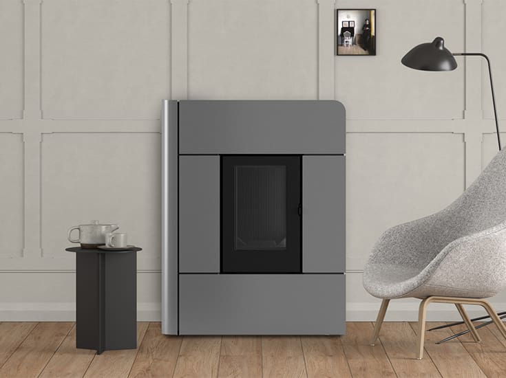 Raam ist mit seiner Tiefe von nur 28,2 cm der perfekte Pelletofen für Flure und Räume, in denen ein auf den Zentimeter beschränkter Platz zur Verfügung steht. Er ist vollständig aus Stahl gefertigt, das Gehäuse ist schwarz, die geometrisch gestaltete Front präsentiert sich in den Farben Weiß, Bordeaux, Schwarz oder Silber. Er gehört zur Kollektion „Easy“ von MCZ, einer Reihe von Pelletöfen, die mit Standard-Endverarbeitungen und -Elektronik zu einem fairen Preis angeboten werden. Hermetisches Produkt mit Keramikzündkerze, die um 40 % reduzierte Einschaltzeiten gewährleistet. Eine Bedientafel an der Maschine.