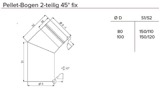 Pelletofenbogen 2-teilig 45° fix Ø 100 mm inkl. Gummidichtung